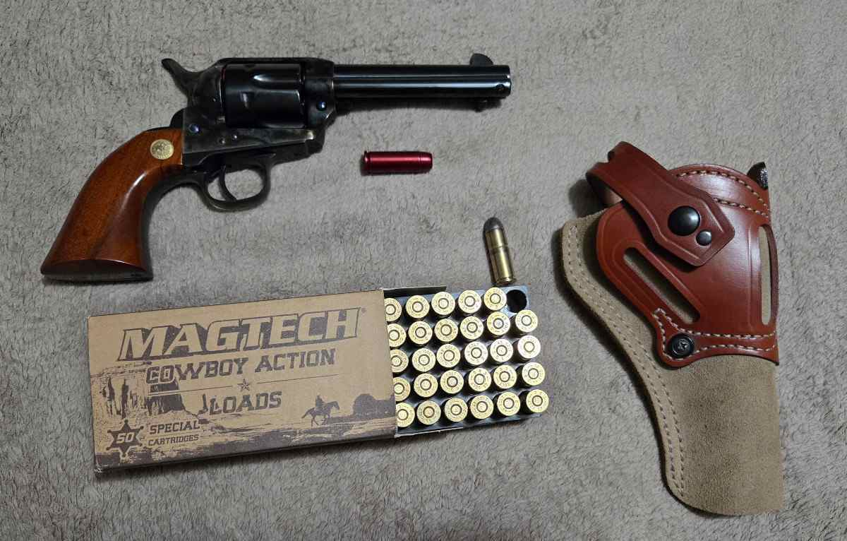 Selling a very lightly used Cimmaron Model P(Colt Peacemaker clone) in .45 Colt. In excellent condition with less than 50 rounds through it, mostly sat in the safe. Comes with 50 rounds of 250gr ammo, 6 snap caps, and a DeSantis holster.